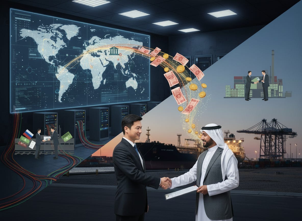 The second component is yuan-denominated trade. In 2023, Saudi Arabia, the world’s largest oil exporter, signed a currency swap agreement with China and signaled openness to yuan settlement. This is important because it undermines the petrodollar system. A system established in the 1970s when Saudi Arabia agreed to price oil exclusively in dollars. The petrodollar has been the backbone of the dollar's reserve currency status for 50 years. Every nation that imports oil needs dollars to buy it, which means every nation on earth holds dollar reserves. Saudi Arabia's acceptance of the yuan is not insignificant. Russia now settles the majority of its trade with China in yuan and rubles. India is looking at rupee-based trade with multiple partners. This is Trompenaars’ external direction operating at a geopolitical scale: China has not confronted the petrodollar system; it has created opportunities to move away from it as those opportunities develop.
