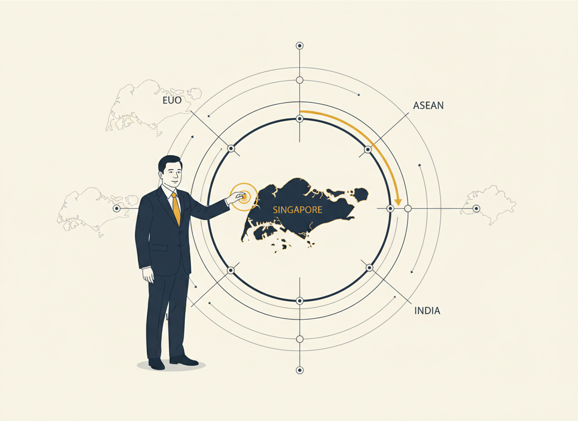 Singapore has no leverage in the traditional sense. It is a city-state of six million people with no natural resources, no agricultural exports, and minimal military strength. What it has is 28 free trade agreements, six digital economy agreements, and membership in both the CPTPP and RCEP, the two largest trade frameworks in the Asia-Pacific. That portfolio makes Singapore the center through which trade flows, whether the US is involved or not.