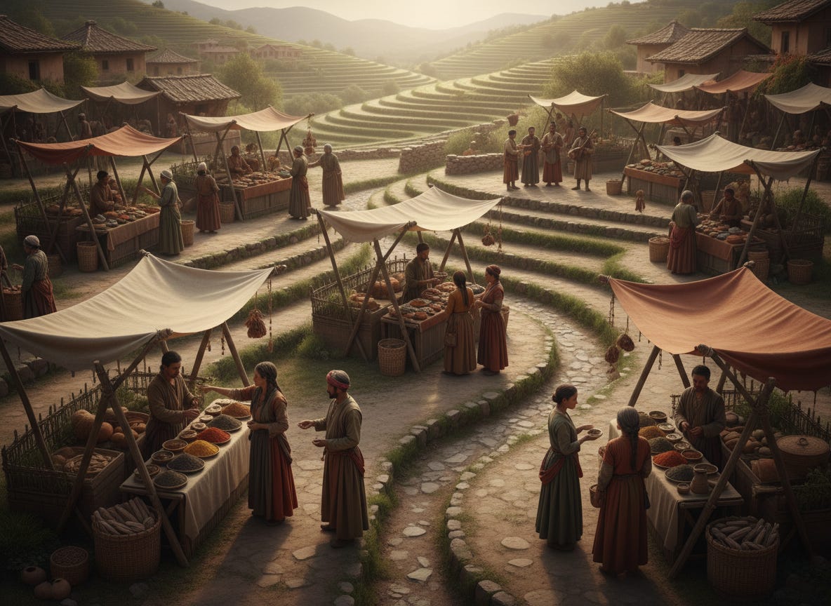 Stand on the docks of medieval Venice, Kilwa, or Quanzhou. Ships arrive carrying spices, silk, and wool from places most locals have never seen. The merchant stepping off the gangplank speaks a different language, worships different gods, and owes you nothing. You have never met his family. You will likely never see him again. Yet somehow you must agree on a price, exchange goods for payment, and trust that neither party cheats.